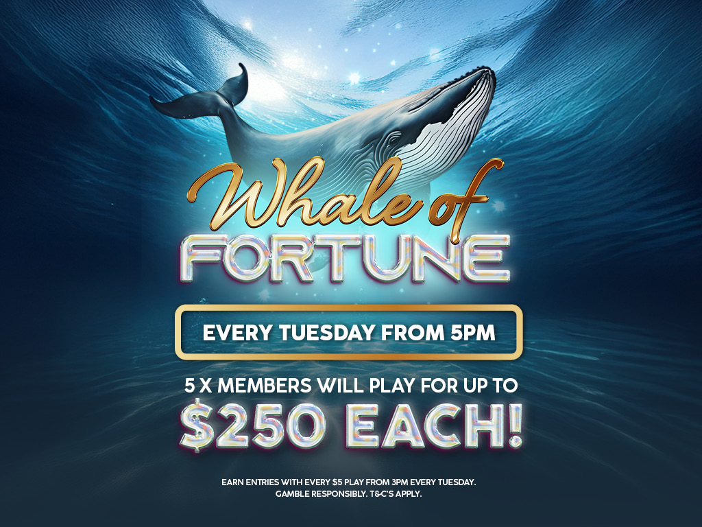 Make a splash every Tuesday night at Club Robina with our exciting Whale of Fortune promotion! Five lucky members will have the chance to play for up to $250 each, that’s a total of $1,250 up for grabs every week! Simply earn an entry for every $5 you play from 3 PM on Tuesdays. Gamble […]